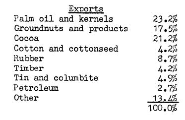 At the time Nigeria had a diversified agricultural economy instead of being a monocrop colony (70% of Ghana’s exports were cocoa, most of Gambia’s exports came from peanuts, and Mauritius depended on sugar). See Nigeria’s exports at independence below: