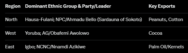 Nigeria at independence was a country of 45 million people held together by British glue, marketing board money, and fragile compromises.