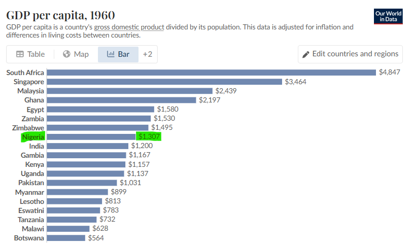 The average Nigerian was richer than most other colonies including Indians and Kenyans. It was right below white-ruled Rhodesia (modern day Zimbabwe).