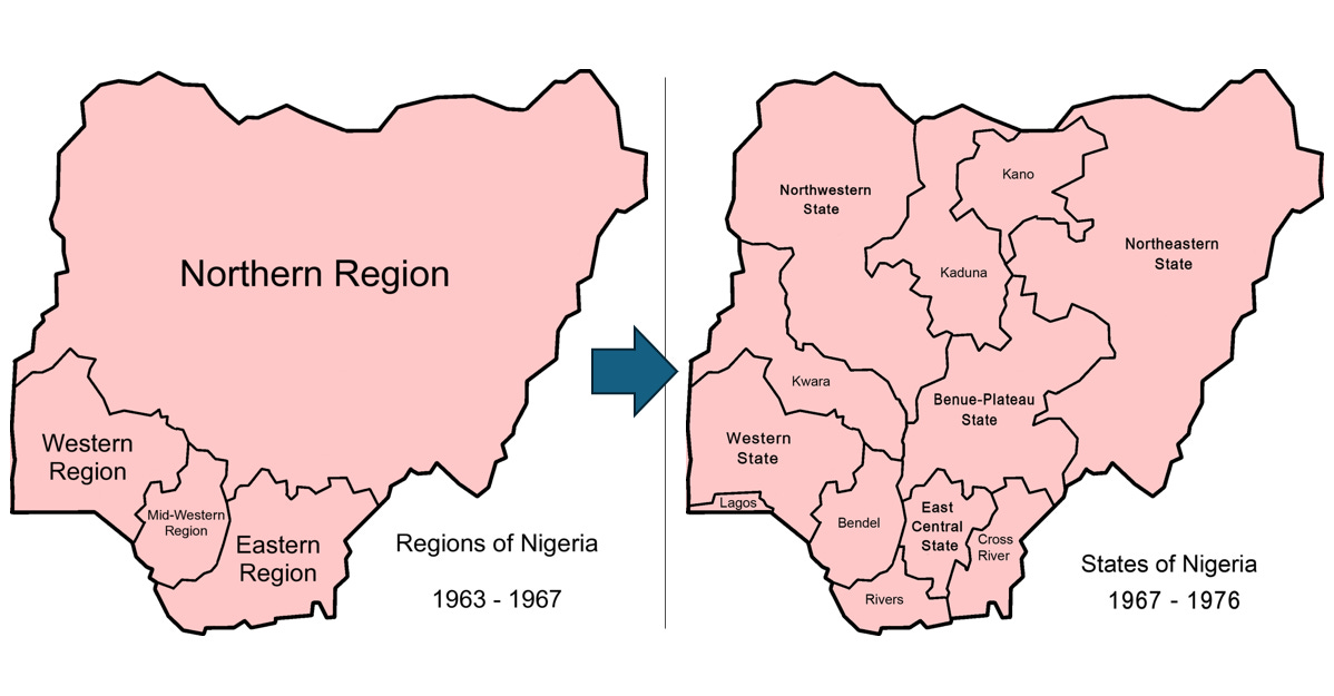 On May 27th 1967, Gowon declared a state of emergency and broke Nigeria’s four regions into 12 states, with three carved out specifically out of the East.
