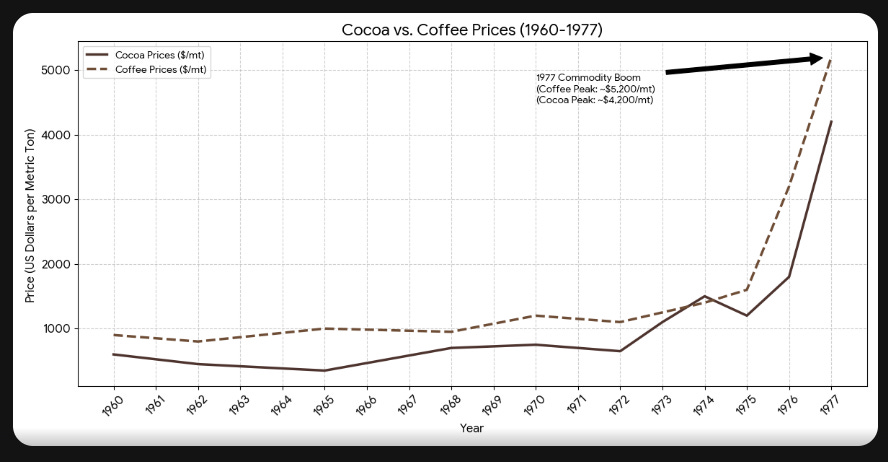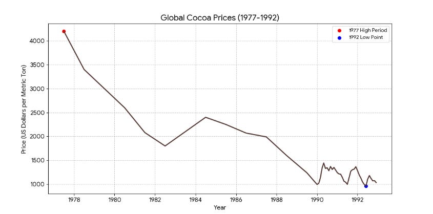 There wasn’t just an increase in prices, he also expanded production. By the late 1970s, Ivory Coast surpassed Ghana in cocoa production.