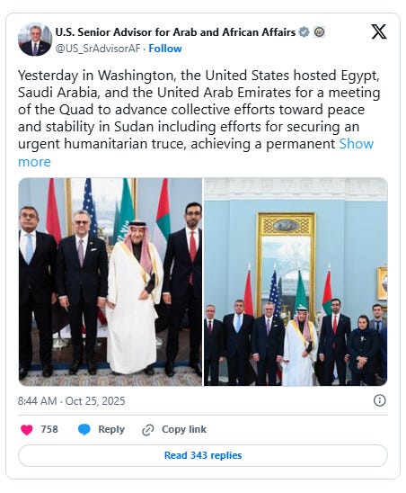 Note: Sudan's recent history highlights an ironic U.S. policy shift. Under Trump, the U.S. used diplomatic pressure to support Sudan’s transition to democracy after Al-Burhan and Hemedti ousted Omar Al-Bashir, despite committing the Khartoum Massacre. This contrasts with Obama’s response to Egypt, where the U.S. supported Al-Sisi after his coup against the democratically elected Morsi, despite the Rabaa Massacre. Obama condemned the events, briefly suspended aid, but ultimately resumed support.