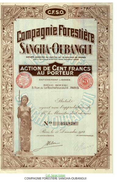In 1899, inspired by King Leopold’s Congo Free State model, France granted concessions to 40 private companies. It was high-risk colonial venture capital.